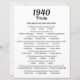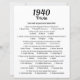 1940 Trivia Game's answer key: 1. C, 2. A, 3. B, 4. A, 5. C, 6. A, 7. A, 8. C, 9. C, 10. B, 11. B, 12. A, 13. B, 14. C, 15. B, 16. A, 17. A, 18. A, 19. B, 20. C.