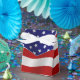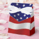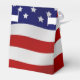 Tent-style with white ribbon favour box with an image of a waving American flag and "1940s" printed on the front in bold black and grey numbers. See the entire Patriotic 40s Favour Box collection in the PARTY FAVORS section.