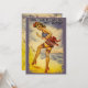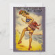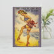 This very cute and funny postcard from World War II days shows a girl at the beach in patriotic bathing clothes with a big bow on the back of her bathing suit and the words, "Sorry, I Had to Leave My Beau Behind!" Reprinted on this party invitation.