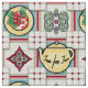 Reminiscent of my Grandma's 1940's era kitchen, This custom-designed, custom-made fabric features a collage of cheery yellow teapots, plates full of red cherries & more in an off-white & tan grid. Available in cotton, polyester, linen, etc. for making quilts, curtains, apparel, upholstery, etc.