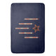 Original design on this bath mat was inspired in part by a 1940's era Art Deco Necktie! With a subtle patriotic feel that's perfectly set off against a deep rich navy blue background, I've combined gold-rimmed red stars w/ clusters of 5 narrow ivory strips overlaid w/ red horizontal stripes and red vertical flames shooting out the bottom and arranged to form the basic Air Force group flight pattern.