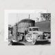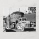 Old photo of trucks at gas station on highway headed to Utica, New York. FSA photograph taken in 1941 by photographer John Collier.