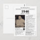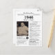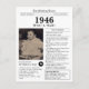 Say happy birthday to someone born in 1946 with this unique Newspaper style birthday postcard, including a photo alongside fun facts and world news from the year of their birth. Designed to resemble a vintage newspaper in classic black and white style. A cute and fun way to celebrate the 1940s!