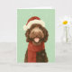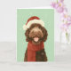Celebrate the season with this joyful Chocolate Labradoodle Christmas card, illustrated in a mid-century modern style inspired by classic 1950s holiday artwork. The happy Labradoodle—curly-coated, smiling, and dressed in a cozy Santa hat and winter scarf as soft snow falls—captures the playful, affectionate personality that makes this popular breed such a beloved family companion. Clean lines, warm colors, and painterly simplicity give the design a timeless, cheerful holiday feel.