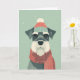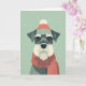 Celebrate the season with this charming Schnauzer Christmas card, illustrated in a vintage mid-century style inspired by classic 1950s holiday artwork. The distinctive Schnauzer—complete with expressive brows and beard, bundled in a cozy knit hat and scarf as snow softly falls—captures the alert, loyal personality that makes this breed so beloved. Clean lines, muted colors, and painterly simplicity give the design a timeless retro holiday feel.