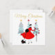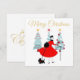 Christmas as it looked like in the 1950's with this retro artwork of a lady all dressed up in a full skirted dress in red.