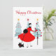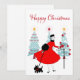 Christmas as it looked like in the 1950's with this retro artwork of a lady all dressed up in a full skirted dress in red. "Happy Christmas" Greeting text.
