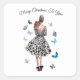 1950 Woman with Butterflies Christmas Greeting Square Sticker