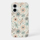 A funky atomic age mid century pattern phone case, featuring retro mcm space shapes in orange, teal blue, and black, on a light cream background. Is perfect for a retro modernism feel.