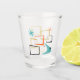 Add that splash of fun and colour to your kitchen cupboards or bar cart with this fabulous atomic era mid century modern shot glass! This design features abstract squares, starbursts, and a boomerang in the colours of orange, turquoise, gold, cream, and black...so funky!