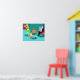 This 1950's Classic Television Poster features a perfect 1950's family in its natural habitat. They are in their turquoise and teal living room. The father is lounging in his red egg chair, while reading the newspaper. The daughter is sprawled out on the floor in a lovely, pink frock. Her blonde hair is in a ponytail and she is kicked back watching a black and white television show on the bright orange, tube TV set. To the left, the mother is wafting into the room in a flouncy green dress and a white apron with red detailing. Not a hair on her blonde head is out of place. She is carrying a pink, three-layer cake with chocolate frosting. You won't believe the details in this design. The bright, red door in the distance, the retro artwork on the wall, the real newsprint on Dad's newspaper and the black and white housewife vacuuming her 1950's living room on the television set make this absolutely irresistible! Oh, my stars! They are a 1950's classic television family watching a 1950's classic television show. Is there no end to this brilliance?