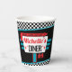 Celebrating your next special birthday in the timeless 1950's Diner theme. Look no further than this black, red and teal with checked pattern featuring a classic diner sign and car with your choice of guy and girl (in 3 hair colors). See my other listings for various hair and skin tone color options for the guy and gal or use the "Click to customize further" option to unhide the other options. This paper cup will be sure to wow your guests and ensure you have a rockin' great birthday party. Visit www.invitecentral.com for digital downloads.