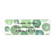 These return address labels have a mid-century modern design of circles in shades of 1950s green with white starbursts in them, all on a field of white.