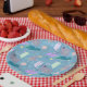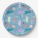1950s Retro Atomic Pattern in Blue and Purple Paper Plate