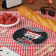 Go all out and create these cute customised diner paper plates! These feature black, teal and red with checked pattern and a 1950's car with a cute girl and guy on a vintage car. Invite Central also has matching invitations and favour tags and other party printables in 4 colorways.