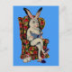 1950s seated big bunny reads story to baby bunny postcard