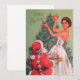 1950s Vintage Christmas Girl Decorating Tree Holiday Card
