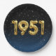 Gold mylar birthday balloons for 1951 birth year on gradient black and blue background with night stars