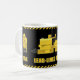 Show off your knowledge of rare and unusual trains used in the Nuclear Energy Industry with this unique mug depicting three views of a brick-built model designed by Phoenix Train Works. Based on a real world locomotive that used to carry exposed nuclear test engines in the desert, the details of the lead-lined locomotive have been recreated in this black and yellow coffee mug. Ideal for AFOL train hobbyists and those in the STEM fields.