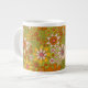 1960s, 1970s Green & Orange Retro Floral Large Coffee Mug