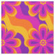 1960s 1970s Style Flowers & Waves Pattern Fabric. Colourful/colorful design of geometric flowers on a background of stripy waves. Scalable pattern.