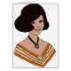 Hand drawn illustration of a fashion model from the 1960s done in dark and pale orange.