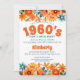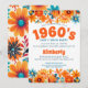 A groovy retro party invitation. This colourful 1960's vibe floral design features flower power florals in orange and blue. Easy to customise with your own groovy fancy dress or retro themed disco party details.