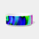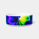 This is a heavy, durable bowl decorated with Tibbies of many colors, the perfect size for hungry/thirsty Tibs. The design is interesting and printing clear.