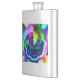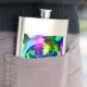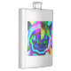 The product is a good size and came exactly as it was pictured. The lid is not attached to the flask, which could be dangerous on drunken nights... The print came out surprisingly well and looks very sharp. Would definitely recommend.