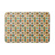 This funky 1970s funky retro style patterned bath mat features circles of brown, teal blue, white, and two shades of orange. This is sure to be an eye catcher in your bathroom!