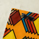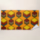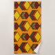 This beach towel throw pillow has a design of overlapping big and small diamond shapes in 1970s colors.