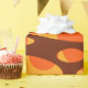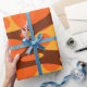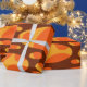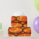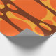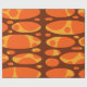This wrapping paper design has two layers of ovals on a field of yellow, brown, and orange.