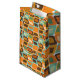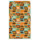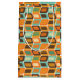 This gift bag has a mid-century modern design of rounded rectangles leaning to the side with leaning rectangles inside made from lines all in 1970s colours.