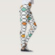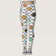 These leggings have a 1970s retro design of ovals in white, brown, blue, and two shades of orange.