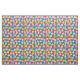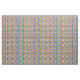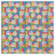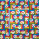 This fabric has a design of squares made of rectangles in bright 1970s colours with peace signs scatter around it.