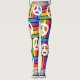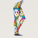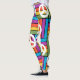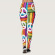These leggings have a design of squares made of rectangles in bright 1970s colors with peace signs scatter around it.