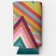 This seltzer can cooler has a 1970s retro design is made from layered upside-down Vs layered in three places all in retro colours.
