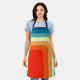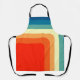 This apron has a 1970s design of concentric squares in retro shades of blue, white, and orange.