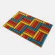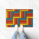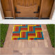 This doormat has a design of squares made of rectangles in 1970s colors.