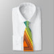 This necktie has a 1970s design on concentric triangles in shades of teal, orange, yellow, purple, and pink on a field of green.