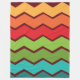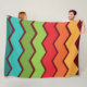 This large fleece blanket has a 1970s design of zigzag lines in yellow, orange, red, green, and blue on a field of brown.