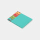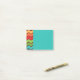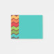 These Post-It notes have a 1970s design of zigzag lines in yellow, orange, red, green, and blue on a field of brown.