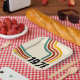 retro, vintage, gift, birth year,50th birthday ,rainbow stripe, 1975 party supplies, retro stripe paper plate, 1975 paper plate, 1974 table