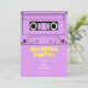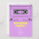 A fully customisable birthday party invitation for a retro themed 80s party featuring an illustration of a black cassette tape against a neon purple customisable background. The text can be customised to suit you needs. Get your retro on !