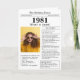 Say happy birthday to someone born in 1981 with this unique Newspaper style birthday card, including a photo of the recipient and a collection of fun facts and world news from the year of their birth. Get creative and create a personalised keepsake. Designed to resemble a vintage newspaper in classic black and white style. A cute and fun way to celebrate the 1980s!