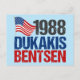 1988 Dukakis Bentsen Funny Retro Election Postcard