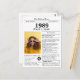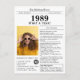Say happy birthday and create a fun party favor with this unique Newspaper style birthday postcard, including a photo of the recipient and a collection of fun facts and world news from 1989. Designed to resemble a vintage newspaper in classic black and white style. A cute way to celebrate the 1980s!