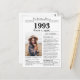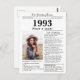 Say happy birthday with this unique Newspaper style Postcard, including a photo of the recipient and a collection of fun facts and world news from the year of their birth, 1993. Get creative and create a personalised keepsake. Designed to resemble a vintage newspaper, it features personalised headlines, text and the photo of your choice.