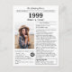 Say happy birthday with this unique Newspaper style birthday card, including a photo of the recipient and a collection of fun facts and world news from 1999. Get creative and create a personalized keepsake. Designed to resemble a vintage newspaper in classic black and white style. A cute and fun way to celebrate the nineties!