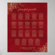 This classy and stylish 19 table wedding seating chart has space for 190 names with 10 seats per table. The crimson red and gold design is simple and sophisticated, yet fancy and glam, with elegant golden script calligraphy and lacy gold faux foil curls and swirls in the corners. Perfect way to add elegance and style to your wedding reception while making it easy for your guests to find their seats.